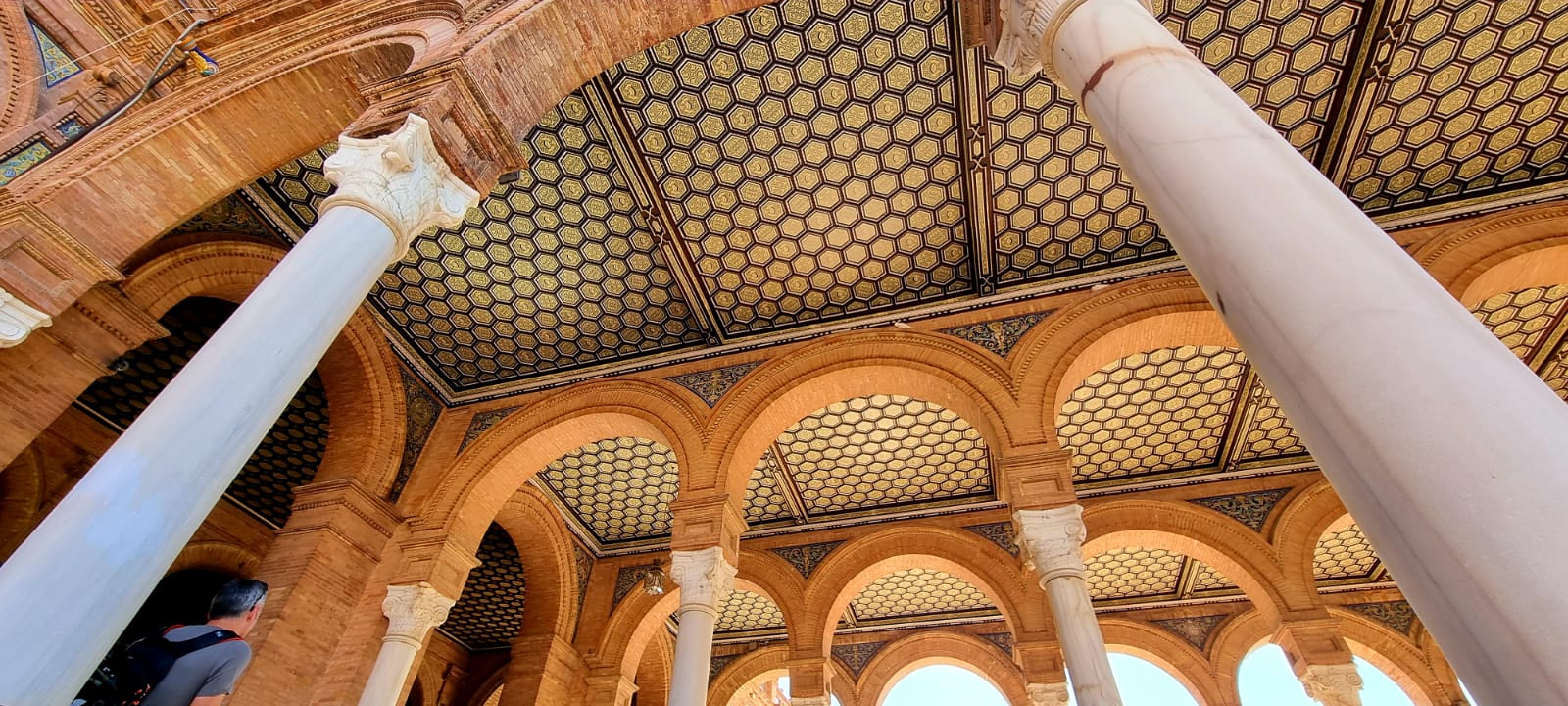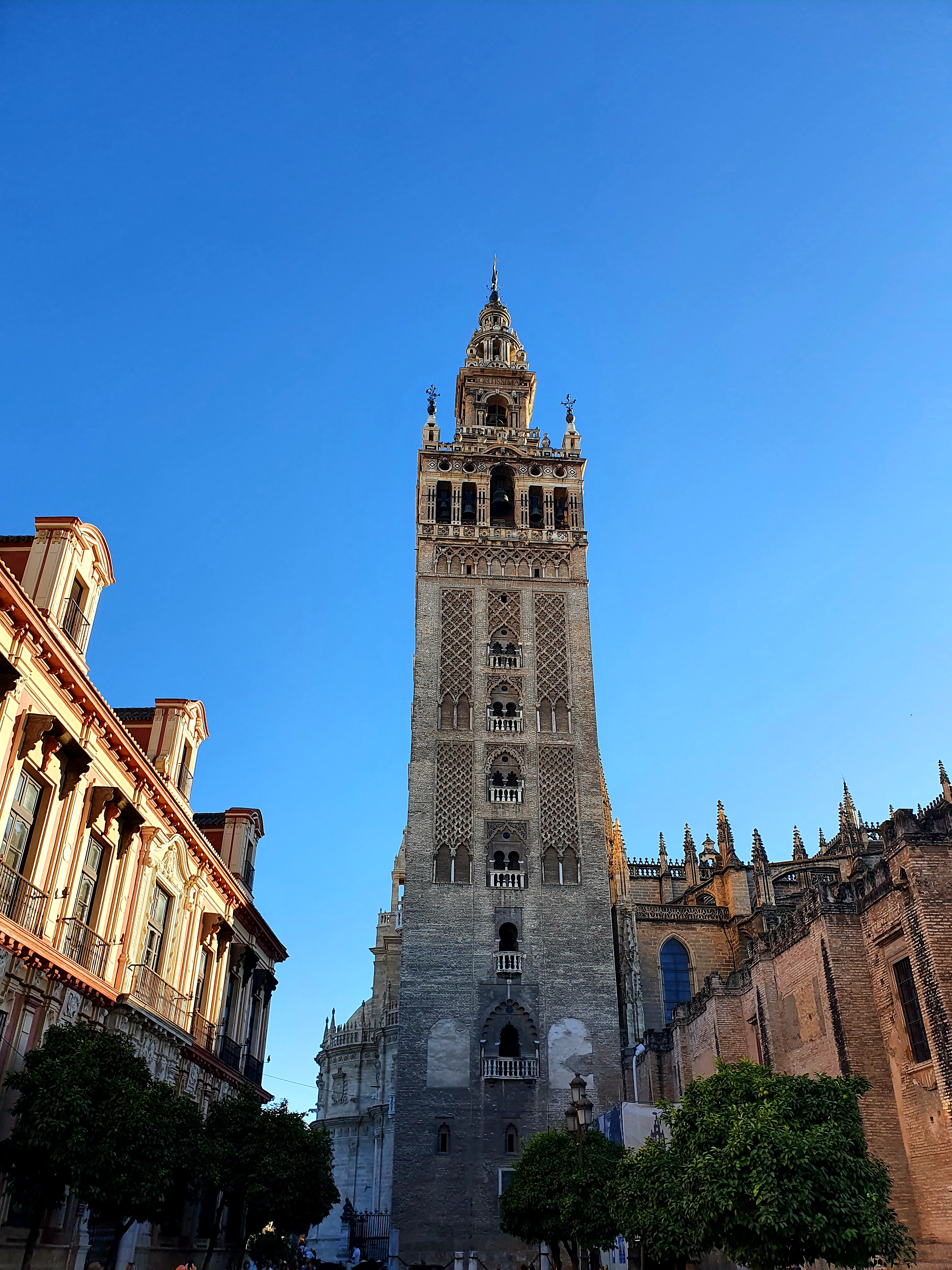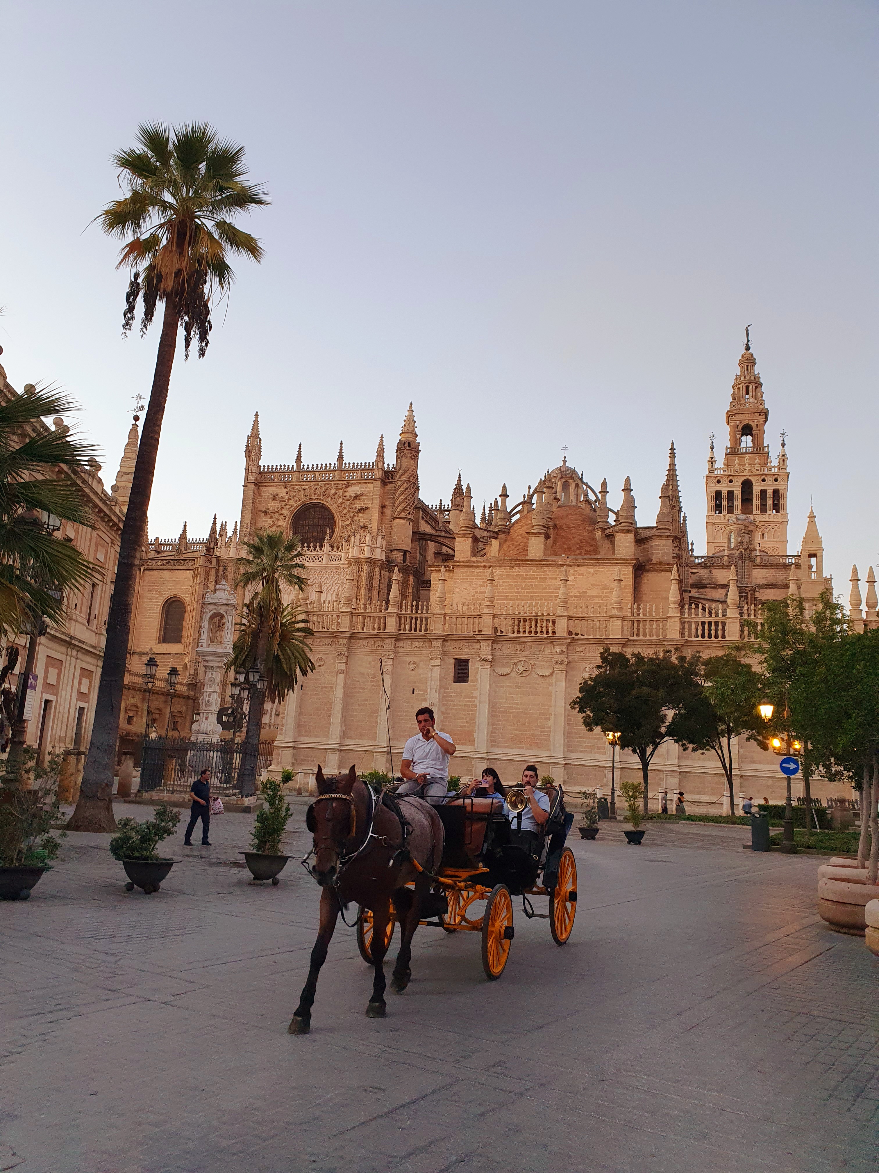 We chose this campsite as it’s a short bus ride from Seville, a city we’ve been looking forward to visiting. Starting off at Plaza de España, we gaped in wonder at the stunning architecture, the porcelain balustrades, mosaiced cobblestones, the ornate tiled benches and the rainbow-casting fountain in the centre. Huge coy carp swam lazily through the crystal clear waterway, on which you could hire a rowboat if you didn’t feel like you might burst into flame at any given moment. A tireless flamenco dancer strutted on a balcony, his wooden heels competing with the Spanish guitar nearby. Glorious.