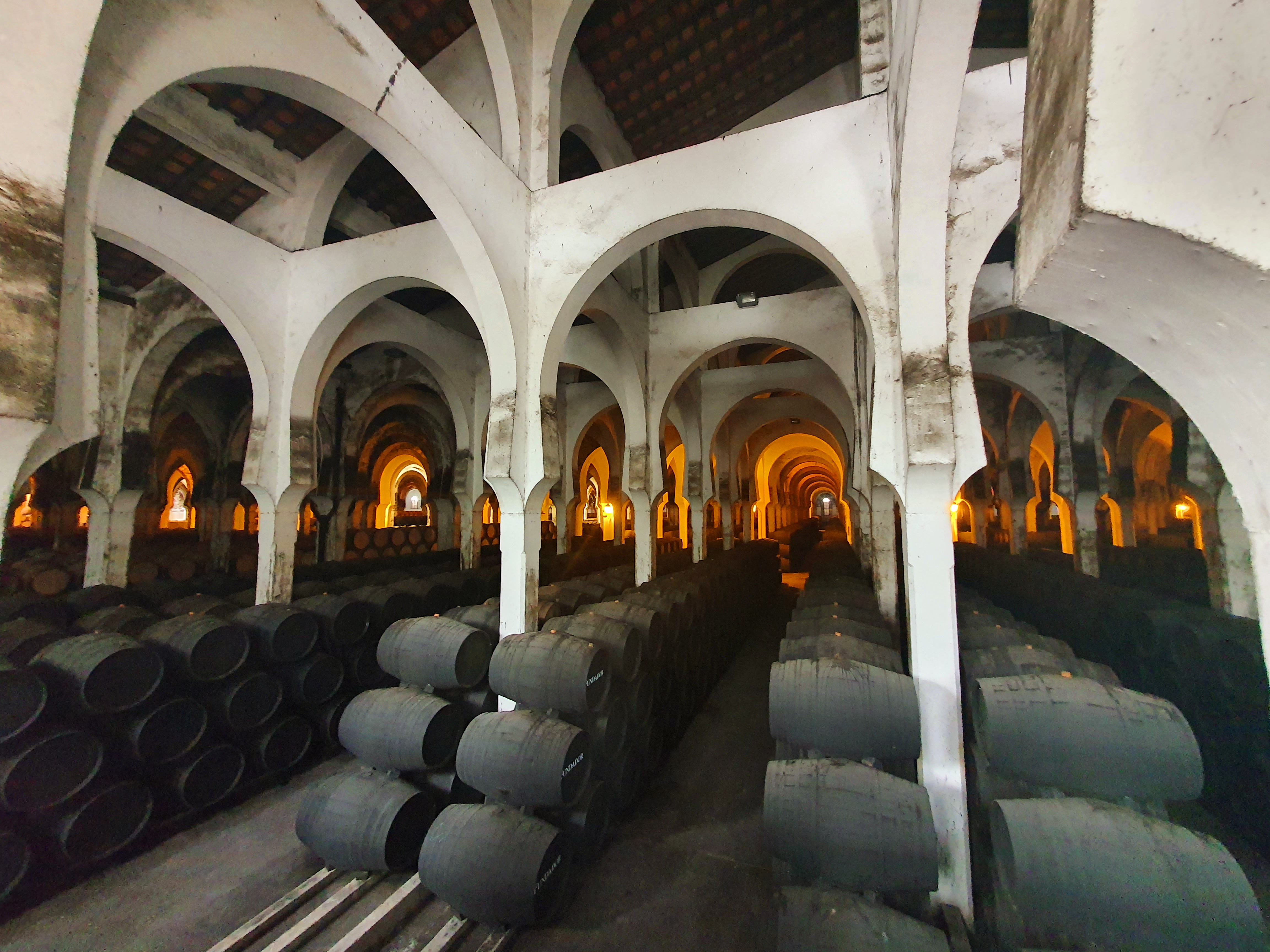 The weather turned and we experienced our first rain in over three weeks, the first since entering Spain. The rain in Spain falls mainly on the Luz shopping centre where we parked up for three nights, hoping to ride it out, and we made the most of a brief break in the showers to cycle into Jerez de la Frontera, one of the three towns that make up the sherry triangle, for a tour and a tasting. We’ve got quite into sherry over the last few years, particularly the syrupy Christmas-in-a-bottle Pedro Ximénez varieties, so the tour was a real treat. Bodega Fundador is where Harvey’s Bristol Cream is made, and I hereby apologise if I’ve ever turned up my nose in the past when offered this, for it is delicious! (It just needs to be served right – cold, with ice and a slice of orange, not dusty, room-temp, and out of a bottle your Granny opened three years prior.)