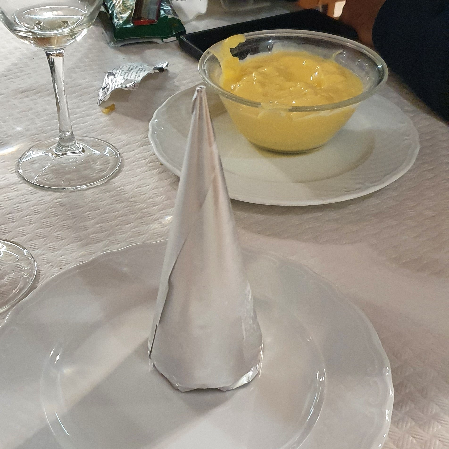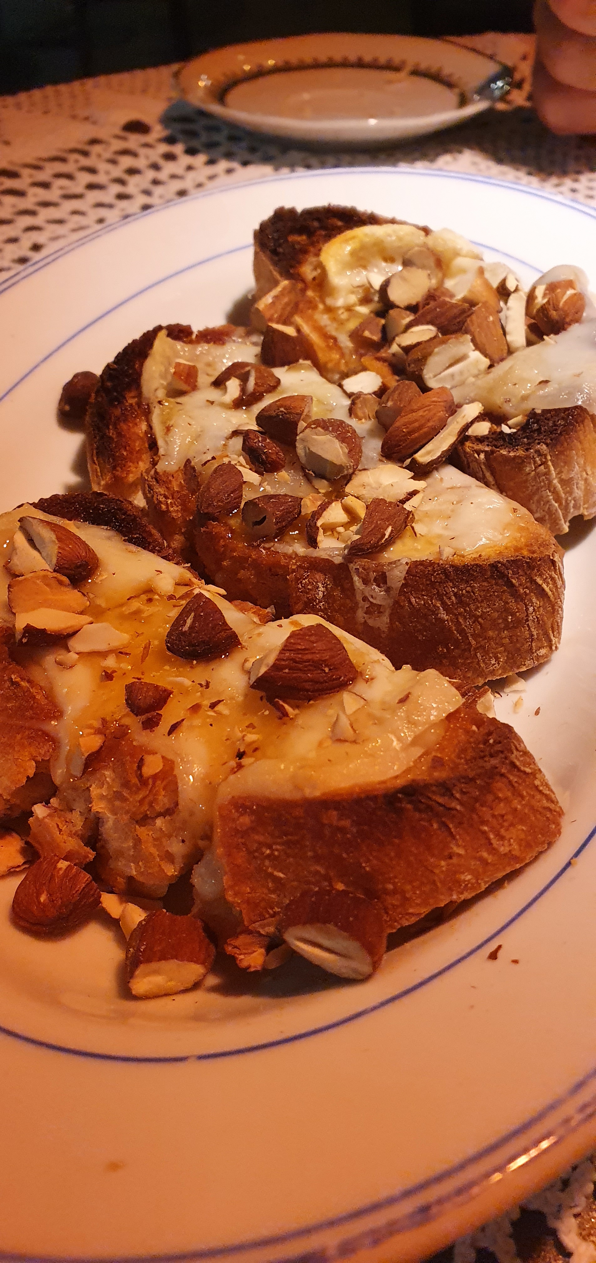 A couple of hours later (and a weird menu del dia from the hotel opposite – of which, more below) and we’re in the cab of a (too short) low loader, on our way to a garage where, for all we know, the van still resides. Poor old Oma has a booboo, no one knows what it is, and the plan emerges that we have to fly home with the van following at some point in the next two weeks.