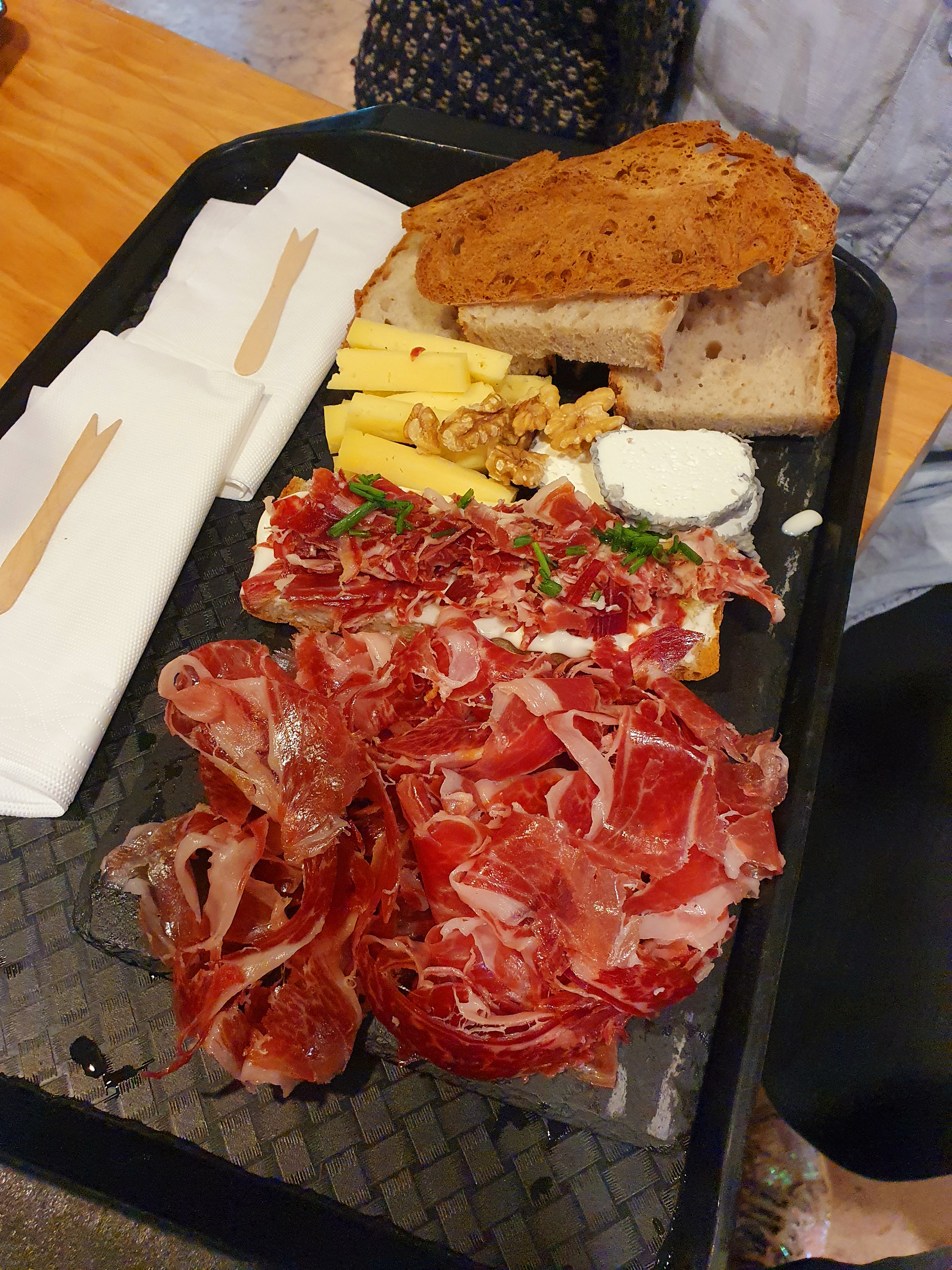 Not the glorious return to the UK that we’d anticipated. Still, rolling with the punches we decided to make the best of our remaining time in Bilbao, where we ate over four nights our body weight and beyond the local pintxos – apparently “bite-sized” delicacies on bread that ranged from sardines and cheese to ragu to chorizo to minty bacalau to a million other flavour combinations. Ridiculously cheap, they and the local txakoli wine helped us fight off the incessant rain and stress and heartbreak of leaving the van behind.
