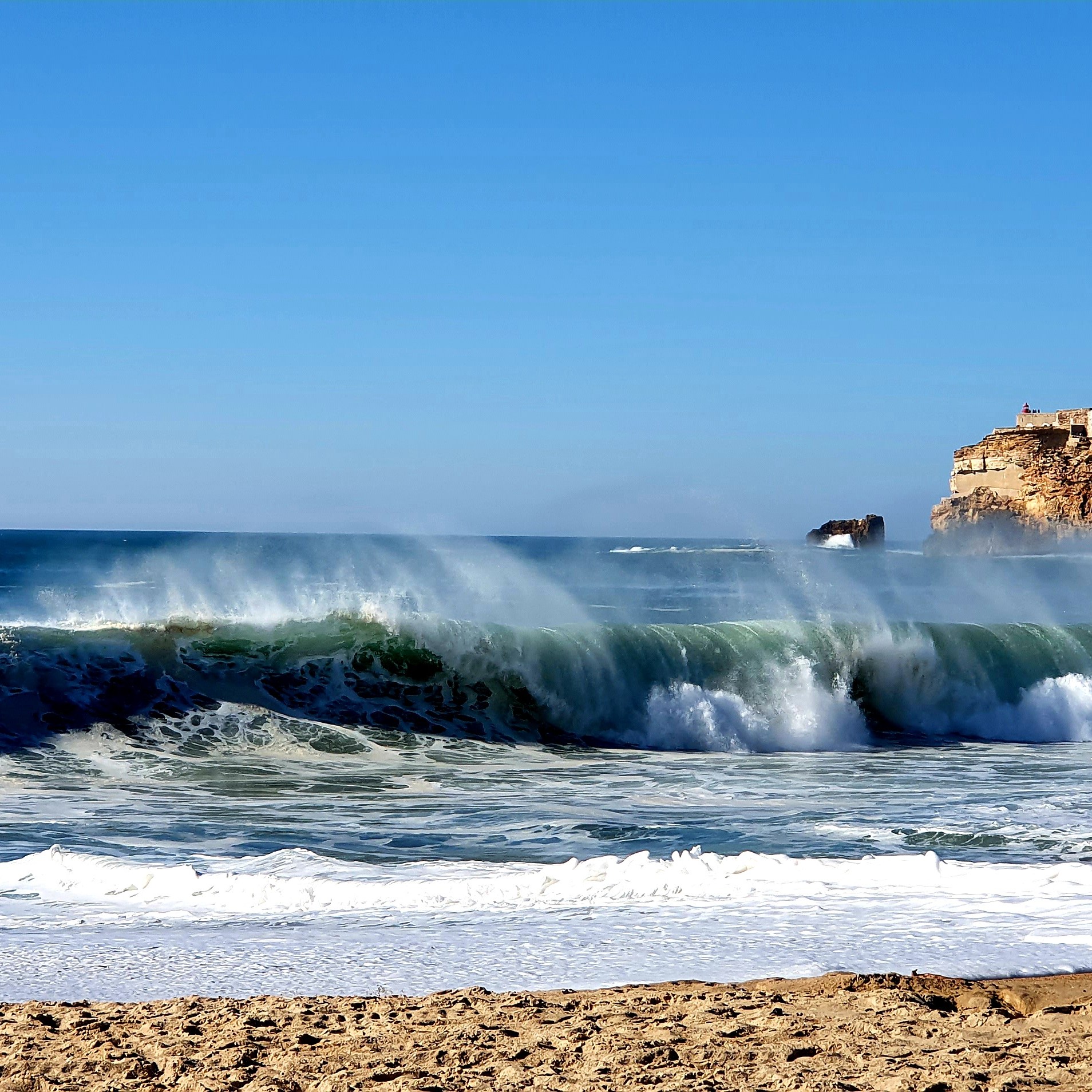 Last year when we visited Portugal, our intention was to go to Nazare, famed for its giant waves due to the underwater canyon that funnels huge swells into its bay. Having got as far as Porto (and having driven upwards of 1,500 miles in just over a week) we were exhausted and needing to head back, so we didn’t drive down the last 130 miles of coast needed to hit this surfer’s paradise. We were gutted to discover that the storm of the century hit just one week later, resulting in waves over 100 feet high. We vowed next time we would return.