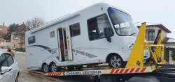 A couple of hours later (and a weird menu del dia from the hotel opposite – of which, more below) and we’re in the cab of a (too short) low loader, on our way to a garage where, for all we know, the van still resides. Poor old Oma has a booboo, no one knows what it is, and the plan emerges that we have to fly home with the van following at some point in the next two weeks.