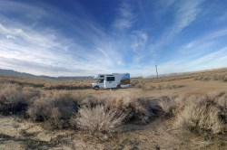 Today has seen us navigate 50-mile long stretches of highway in a perfect straight line, visit a ‘ghost town’ that seemed plenty alive with tourists, and complete the day’s journey as the setting sun turned the mountain-edged valley we drove through a deep rust-gold.